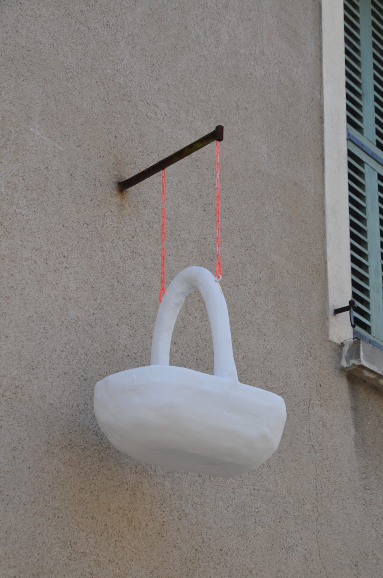Pour cette exposition de fin de résidence, Anne Sarah Sanchez proposait une balade artistique dans le centre-bourg de Luynes à la découverte des sculptures suspendues à travers le village.