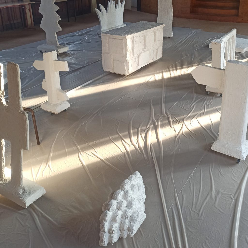 Questionnant ce qui nous entoure tous les jours, les enfants de l’école de Mont-Cauvaire et de l’IME Dominique Lefort ont crée des dessins et des sculptures donnant à voir les éléments, naturels et construits, qui composent les milieux ruraux qu’ils et elles fréquentent tous les jours.