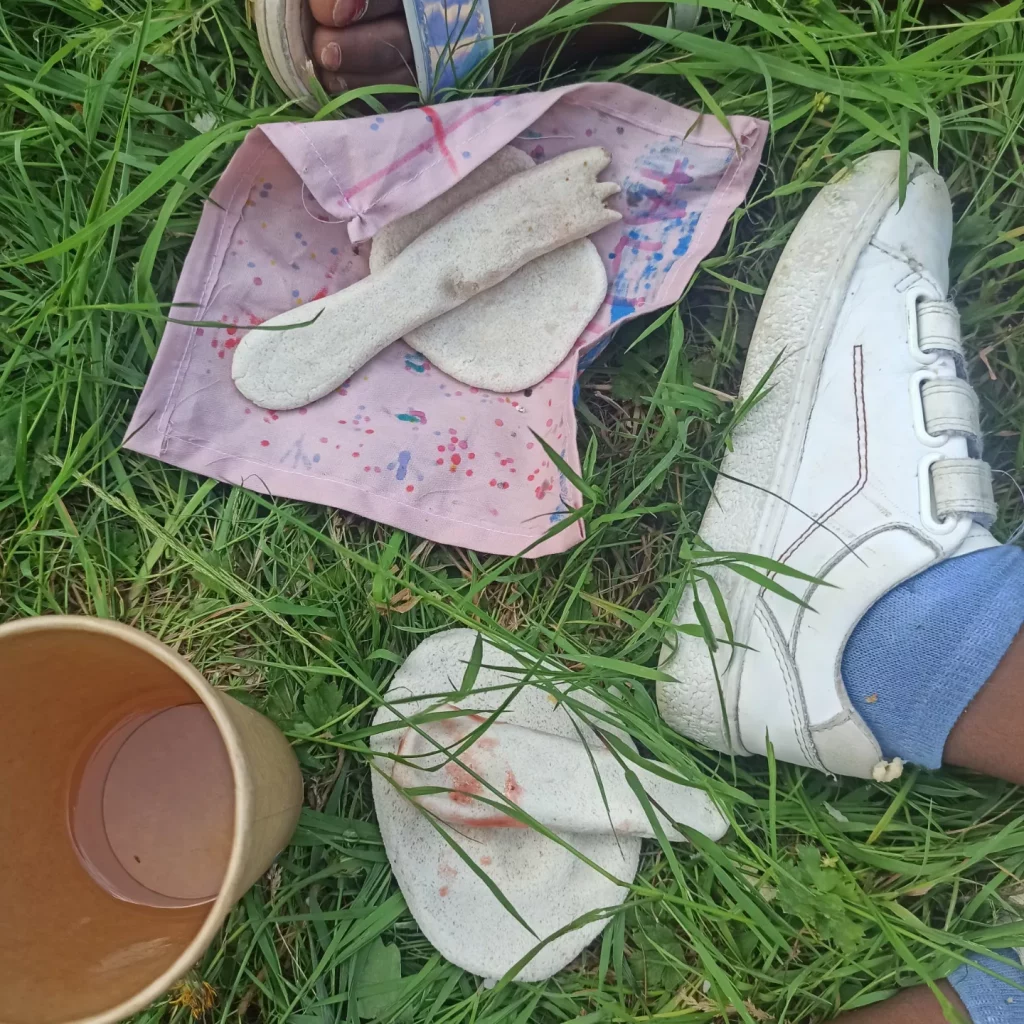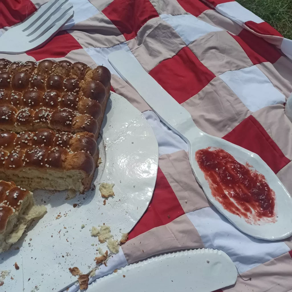 Ensemble, nous avons créé de la vaisselle en pâte à sel que nous avons ensuite cuit dans un four banal médiéval. Une fois cuite, elle nous a servi à déguster un goûter géant!